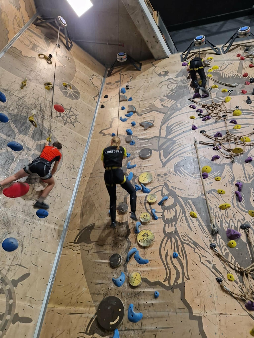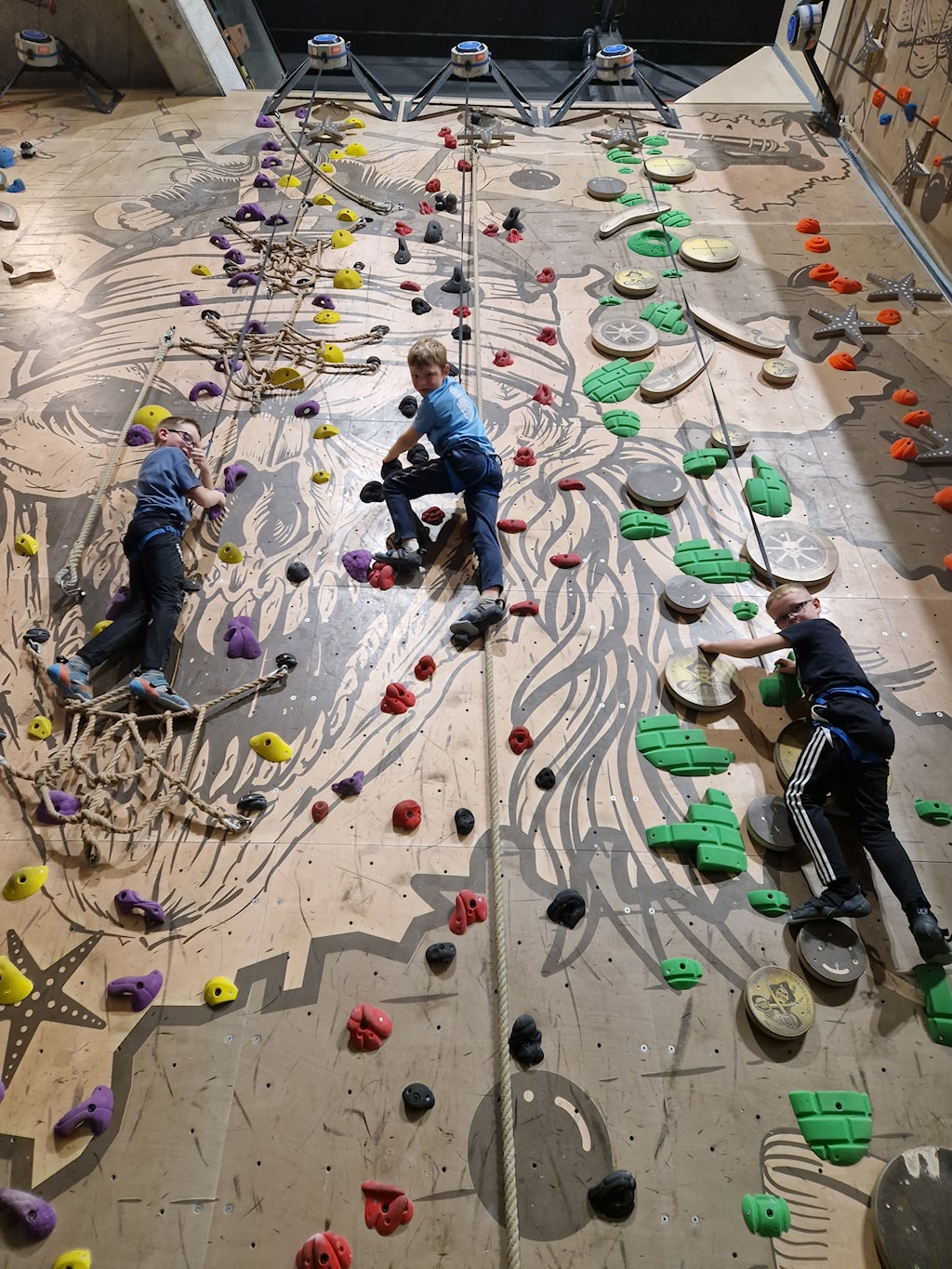 Etter en kort innføring av instruktør - fikk alle muligheten til å prøve seg på ulike klatreutfordringer, tilpasset både nybegynnere og de med litt mer erfaring. Det var artig å se hvordan barnas mestringsglede vokste for hver rute de klatret.
